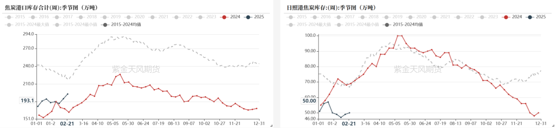 焦炭港口库存193.1万吨,周环比+15.9万吨。