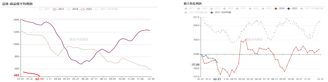 原料煤延续偏弱运转,焦炭共提降十轮500-550元/吨,焦化利润环比压缩至盈亏均衡,亏本焦企增多,钢厂高炉盈利尚可,两会前连续提降的可能性较低。